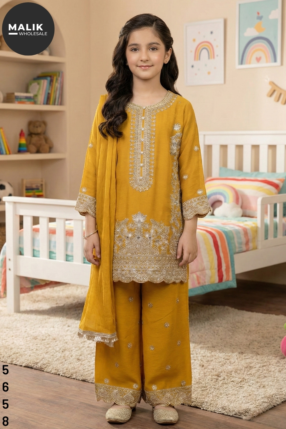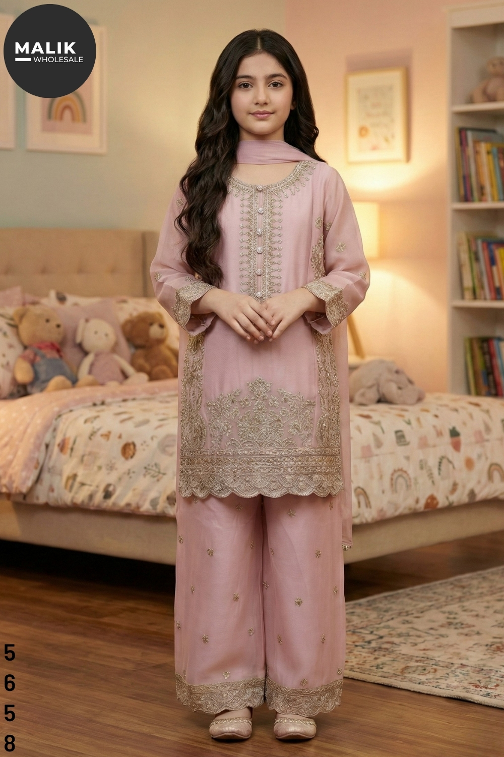 Introduce timeless elegance to your girlswear collection with the 5540 – Girl’s 3Pcs Embroidered & Stitched Chiffon Midi Shirt. This premium outfit is thoughtfully designed to blend traditional charm with modern comfort, making it an ideal choice for festive and semi-formal occasions. The midi-length shirt is crafted from soft, lightweight chiffon and adorned with intricate embroidery along the neckline, sleeves, and hem, creating a refined and graceful look. Its stitched finish ensures a perfect fall and comfortable wear for young girls. The matching chiffon trousers complement the shirt beautifully, offering ease of movement while maintaining a polished appearance. Completing the set is a coordinated dupatta that adds an extra touch of elegance. Designed for style-conscious parents and retailers, this 3-piece set is suitable for weddings, Eid celebrations, parties, and family events. Available in sizes 20 to 36, it caters to a wide age range and is perfect for boutique and wholesale buyers.