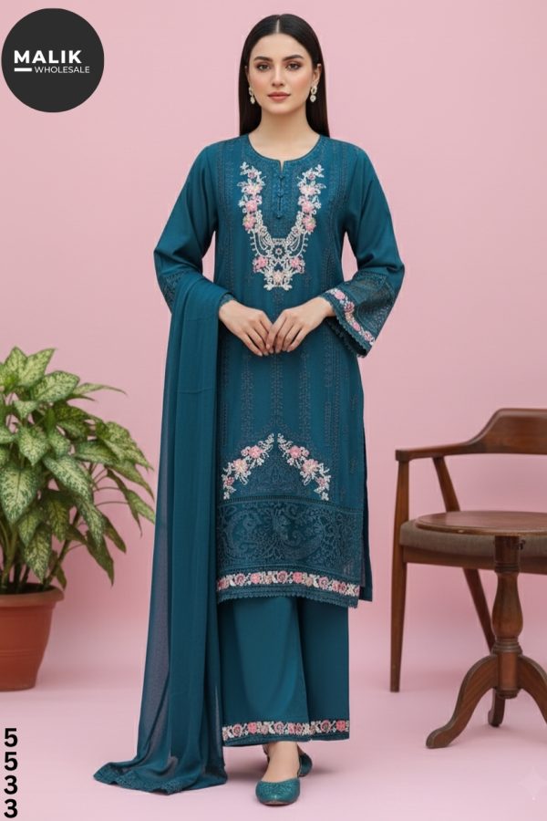 Manufactured and distributed by Malik Wholesale, this dress reflects Pop Couture’s premium quality craftsmanship at a competitive wholesale price. Whether for festive occasions, cultural events, or everyday wear, this embroidered 3-piece suit is a must-have addition to every woman’s wardrobe.