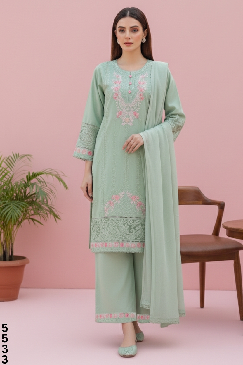 The 5533–Pop Couture Women’s 3-Piece Embroidered & Stitched Dhanak Dress is a perfect blend of tradition and modern style. Designed for women who value elegance and comfort, this ready-to-wear outfit is crafted from premium Dhanak fabric, making it soft, breathable, and ideal for all-day wear.