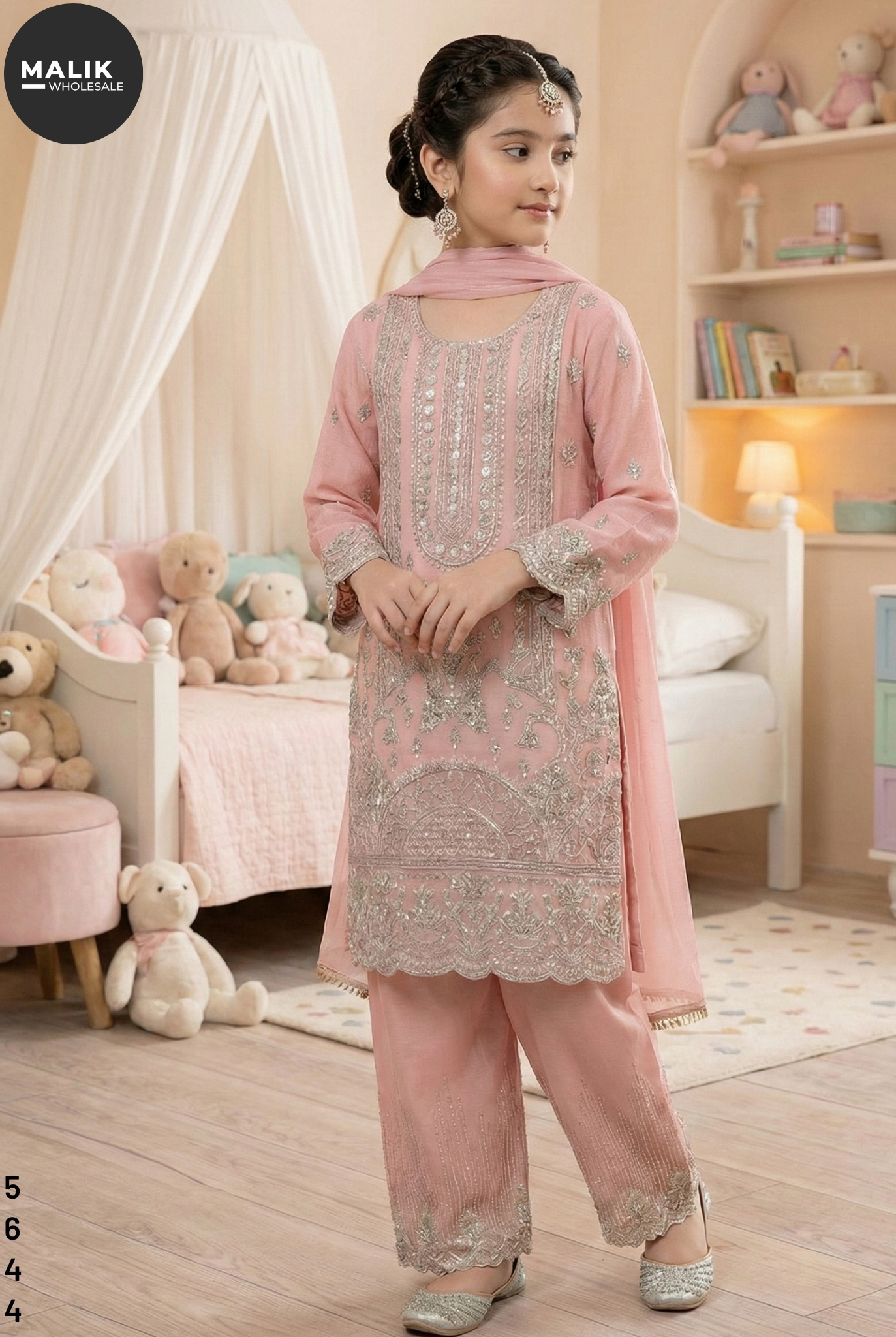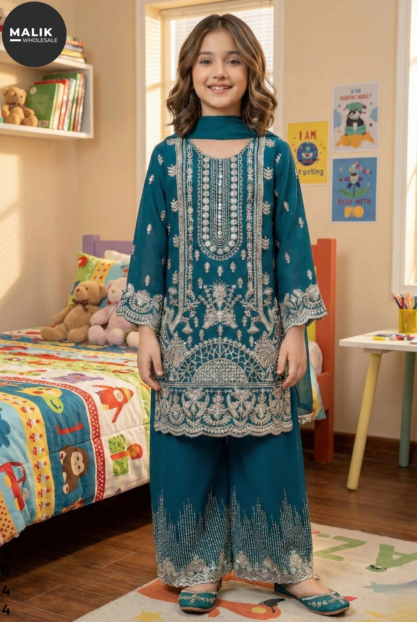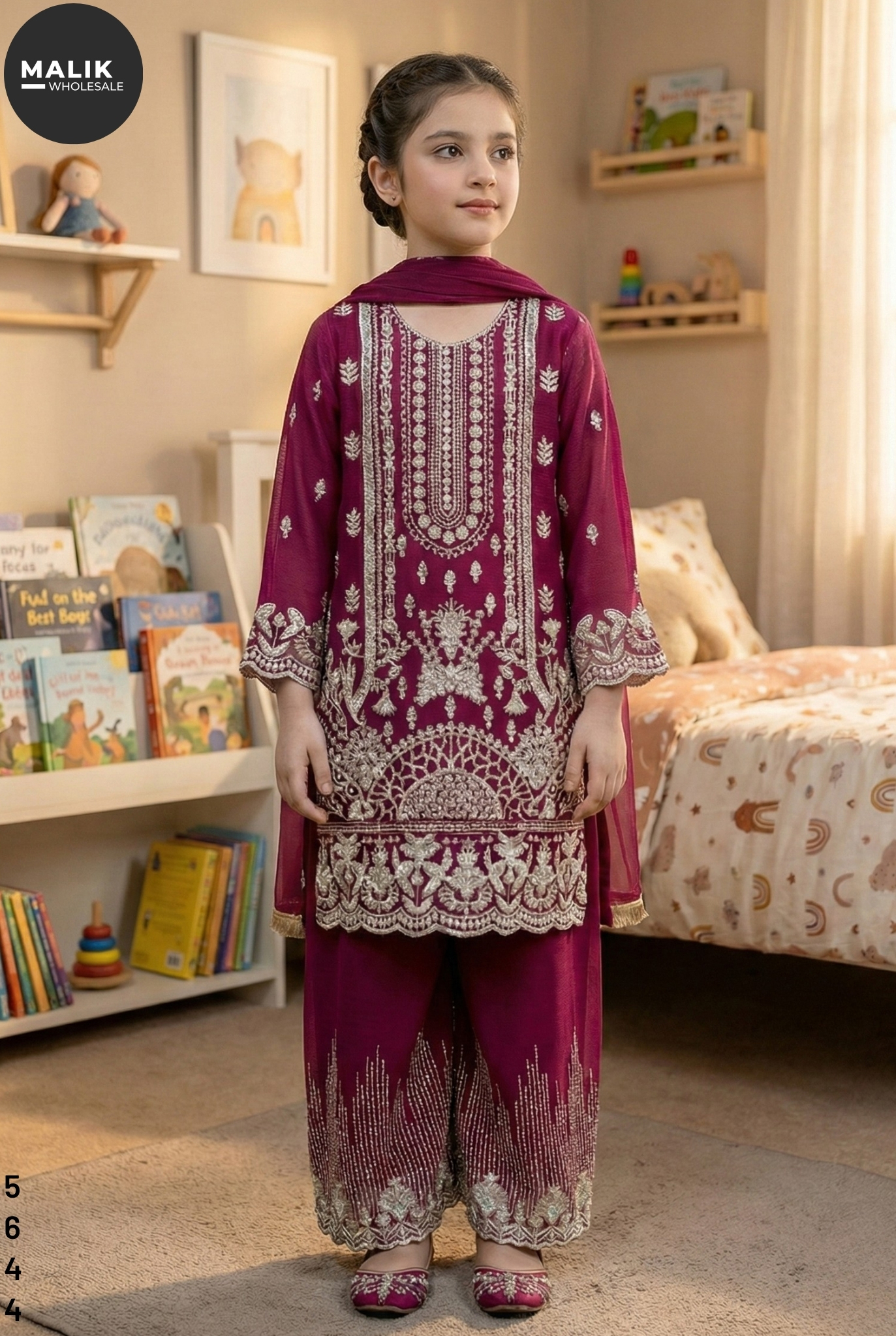 5642 – Girl’s 3Pcs Embroidered & Stitched Chiffon ShararaA stunning 3-piece embroidered chiffon sharara suit designed for girls, perfect for weddings, Eid, and festive occasions. This premium-quality outfit features a beautifully detailed chiffon shirt, elegant sharara trousers, and a matching dupatta. Available in sizes 20–36, with 9 pieces per pack, exclusively from Malik Wholesale –…