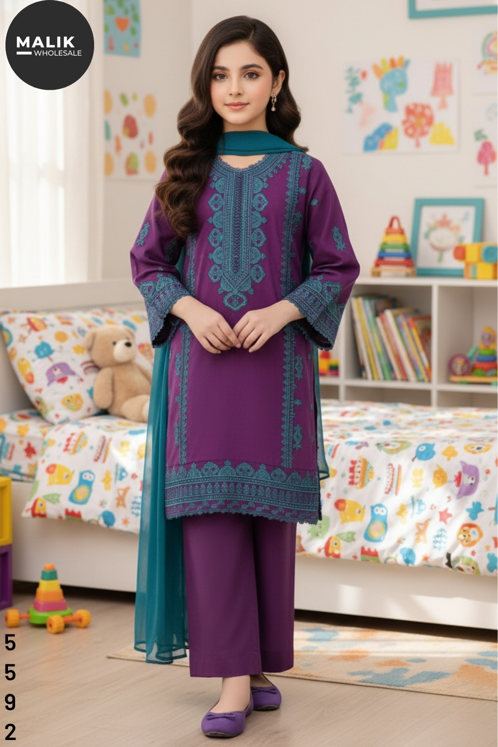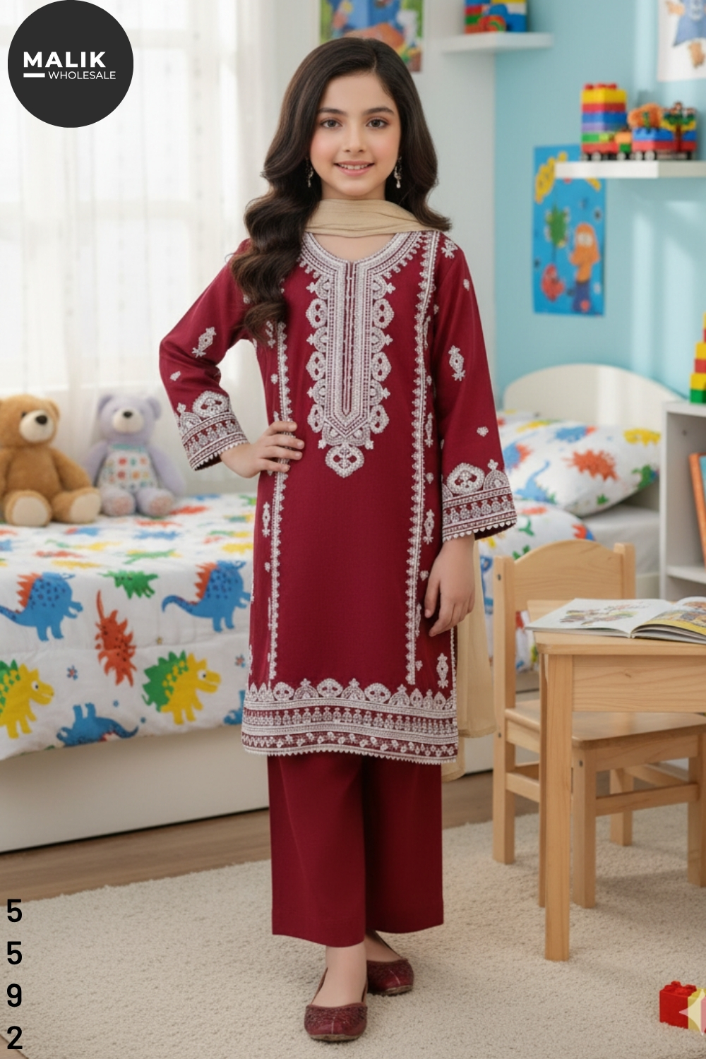 5592 Girls 3Pcs Embroidered & Stitched Dhanak Midi Shirt