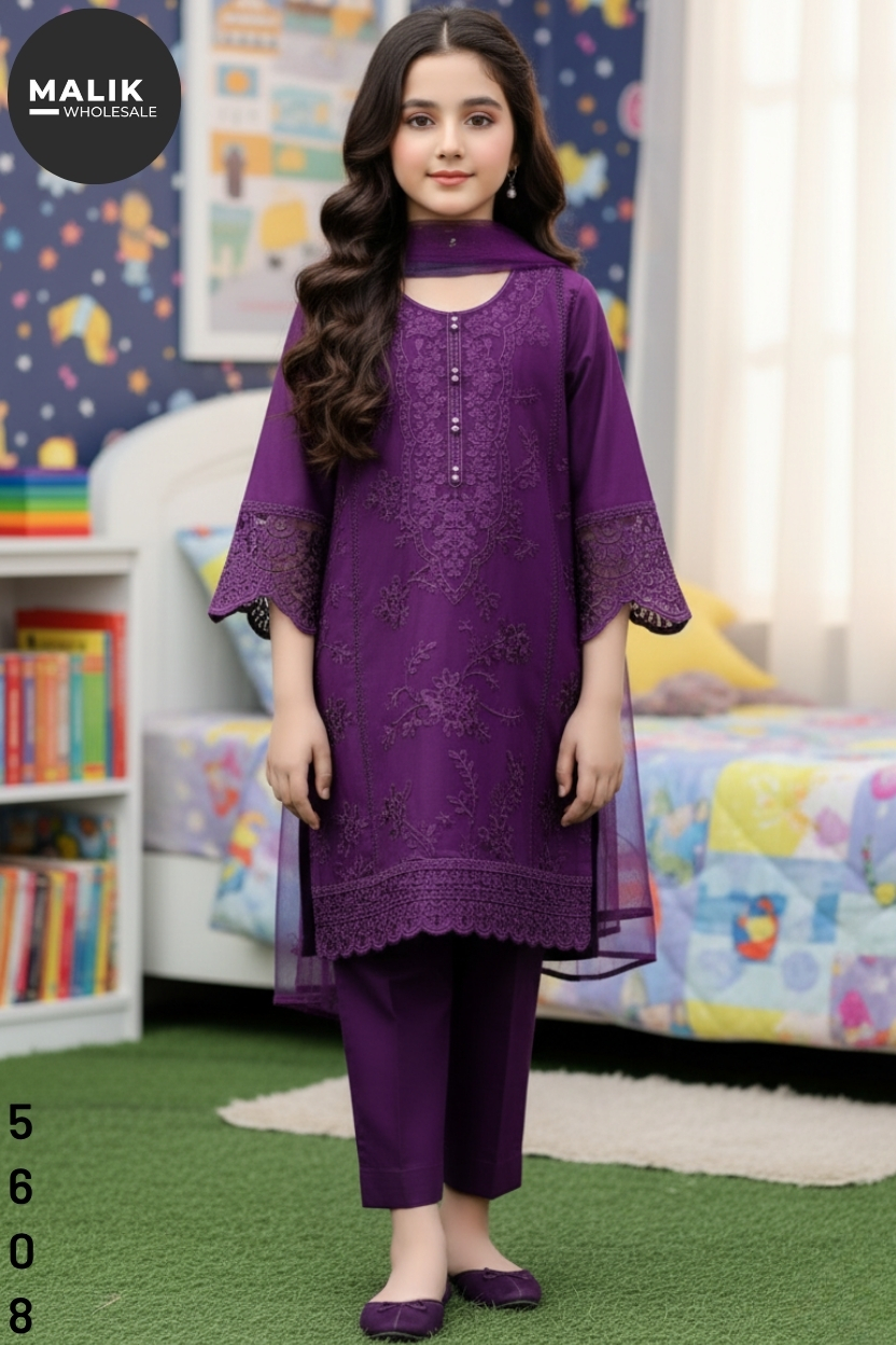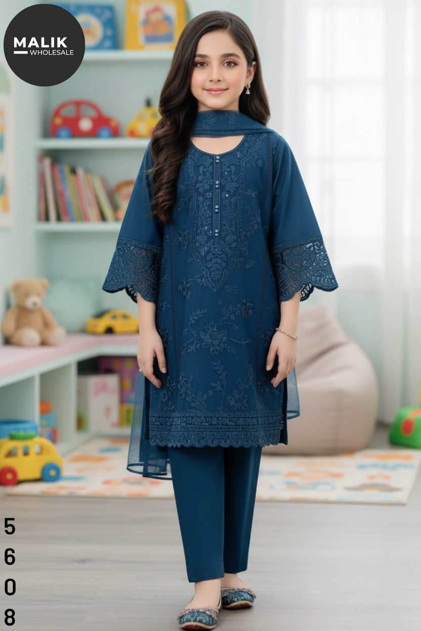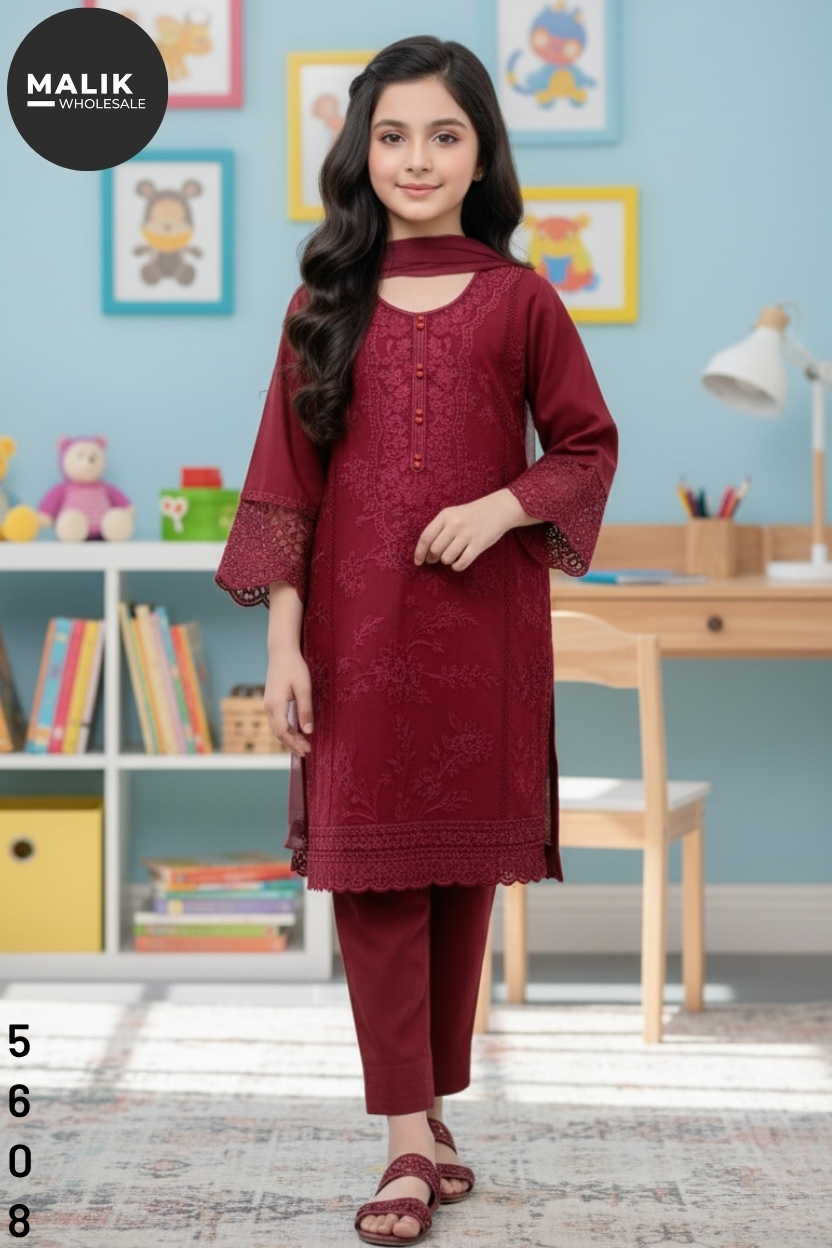 Add a touch of elegance to your little one’s wardrobe with our Girls Dhanka Midi Shirt by Malik Wholesale. Expertly stitched and delicately embroidered, this outfit features intricate detailing on soft, breathable fabric — perfect for both formal gatherings and casual wear. The mid-length shirt offers a graceful silhouette, complemented by stylish sleeves and a comfortable fit for growing girls. Designed to blend tradition with modern flair, it’s available in sizes 20 to 36, ensuring an ideal fit for every age. Each piece reflects Pakistani craftsmanship, making it a wardrobe essential this winter.